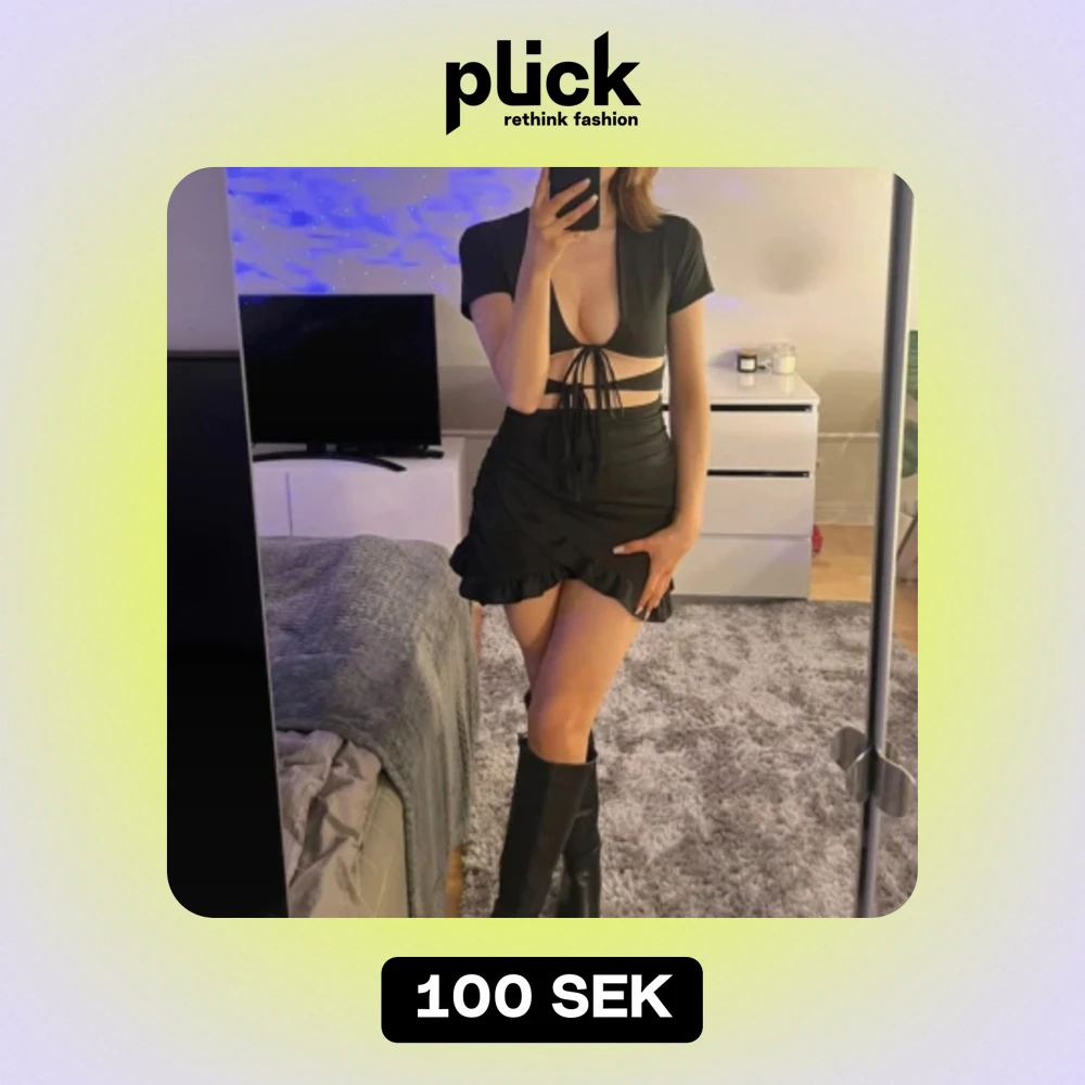 Svart klänning med knytning i fram 🤍 10/10 i skick (aldrig använd) 🤍 Liten i storleken 🤍Storlek M men liten i storleken 🤍 Skriv vid intresse eller för fler bilder!