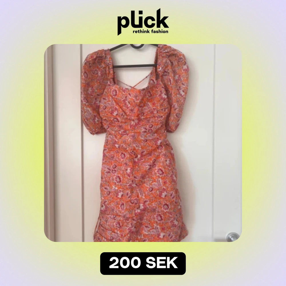 Jättefin blommönstrad klänning med puffärm och snörning i ryggen. Kan också bäras som off shoulder. Sparsamt använd! Strl M. Passar en S-M