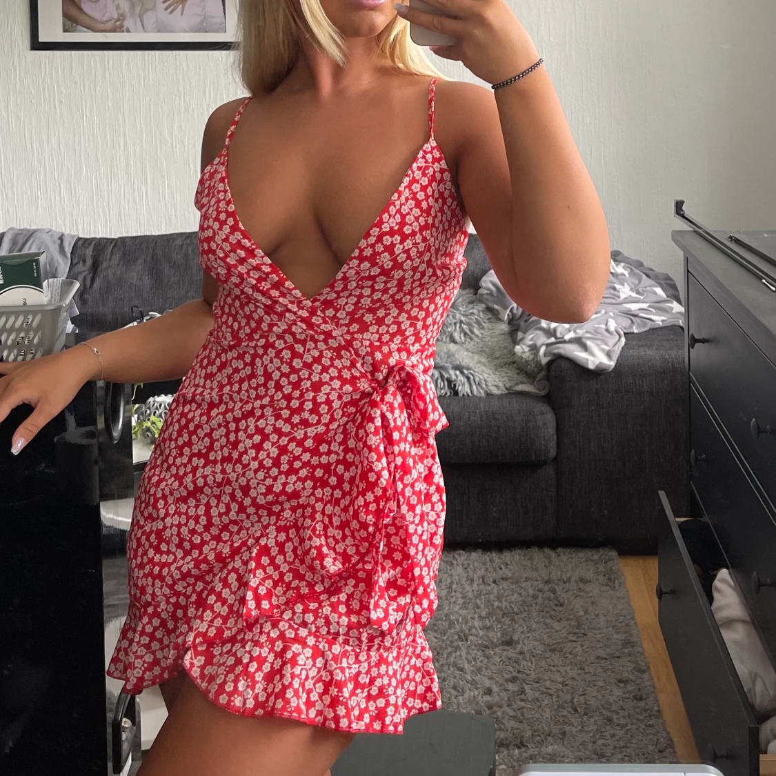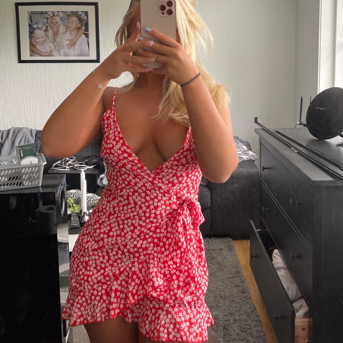 Röd blommig klänning från SHEIN, aldrig använd. Storlek S