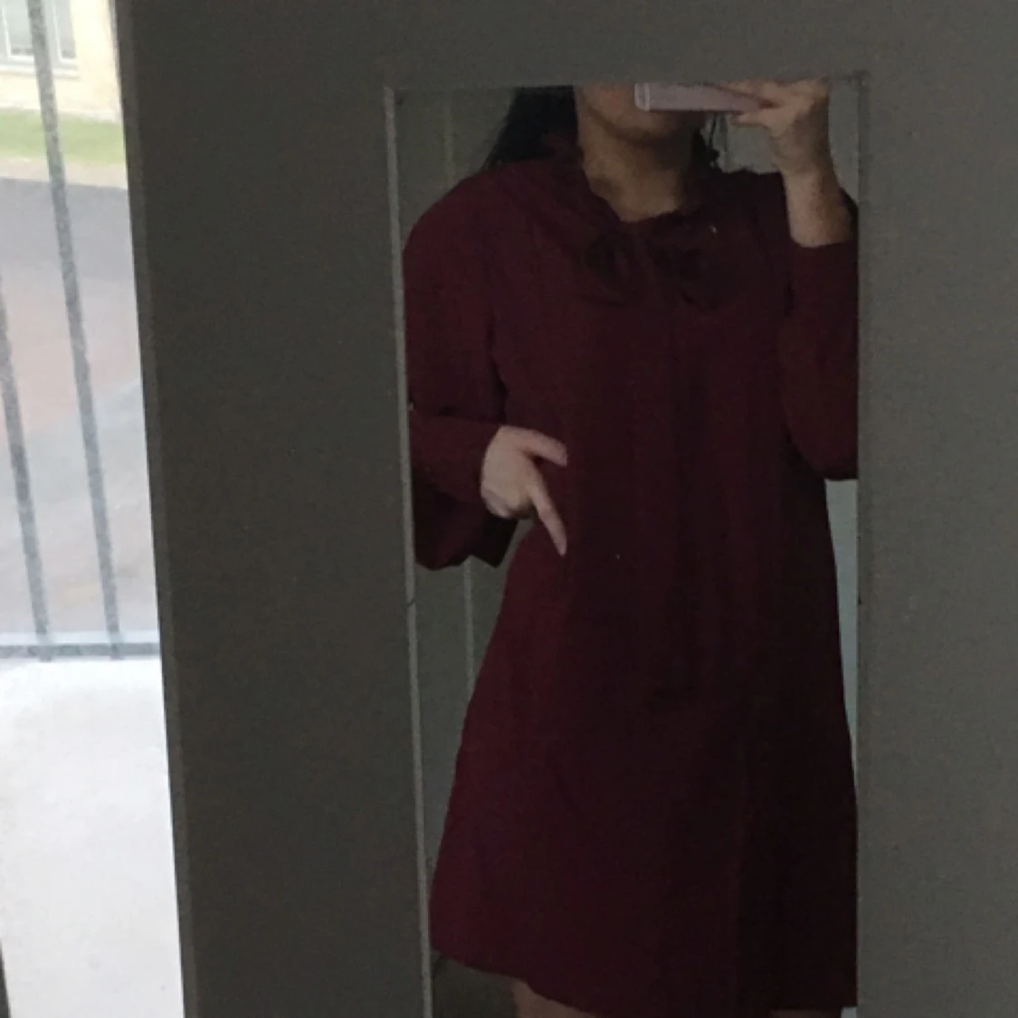 vinröd klänning med skurna armar och band runt halsen som man knyter som rosett Köpare står för eventuell frakt ✨