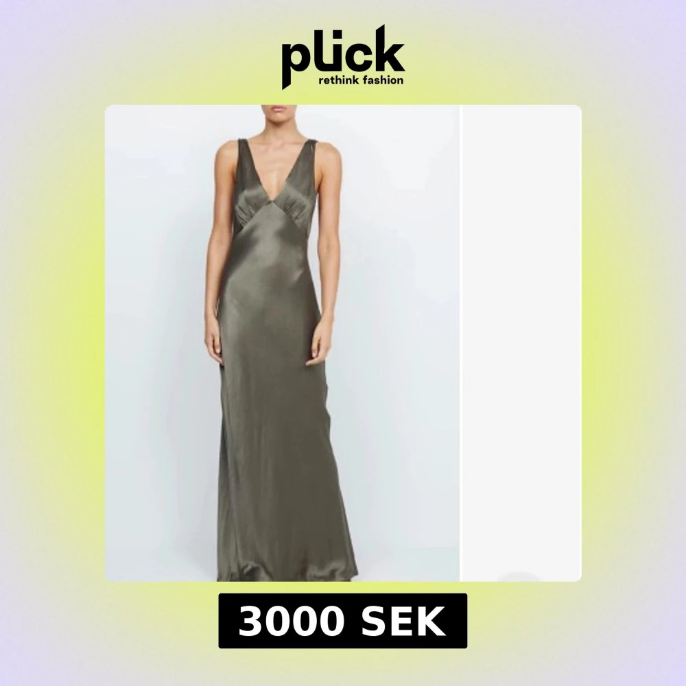 Elegant olivgrön långklänning i siden med djup v-ringning. Stillren och skitsnygg. I stl L från Bec + Bridge, köptes för 4700kr och säljer för 1700kr