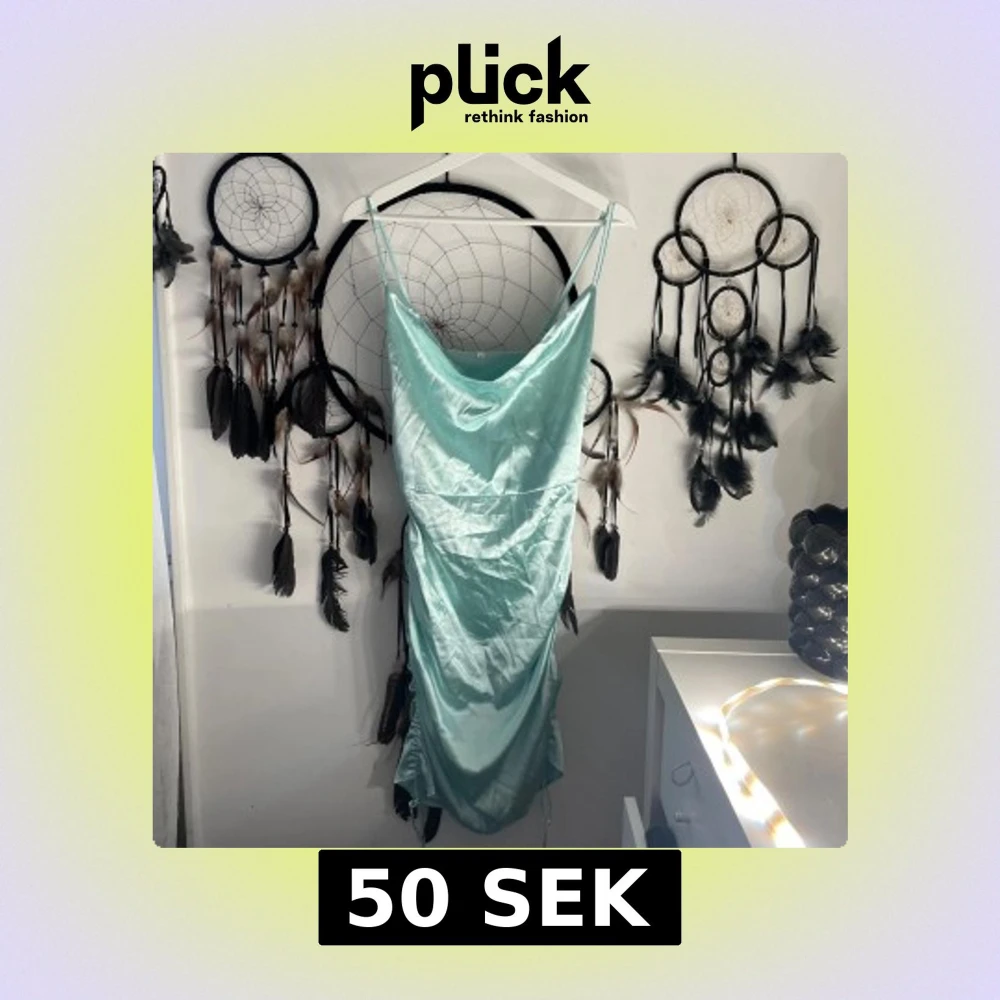 Snygg mintgrön klänning i siden med smala axelband och draperad design. Perfekt för en elegant look med sin glansiga finish och figurnära passform.