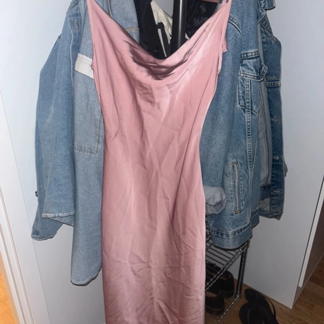 silk klänning, ingen aning vad varumärket är eftersom att den var klippt av gamla ägaren men är som ny. är lite skrynklig i botten men syns inte när man väl har på den! priset går att diskuteras om💗