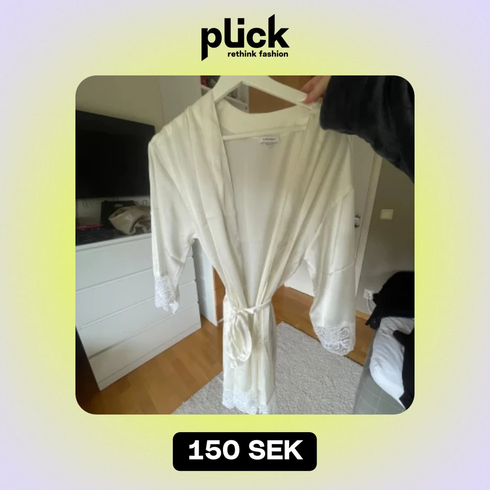 Denna morgonrocken har bara hängt i min garderob sedan jag köpte den, superfin och smidig att ha hemma! Den är i nyskick med spets vid armarna och nedtill.