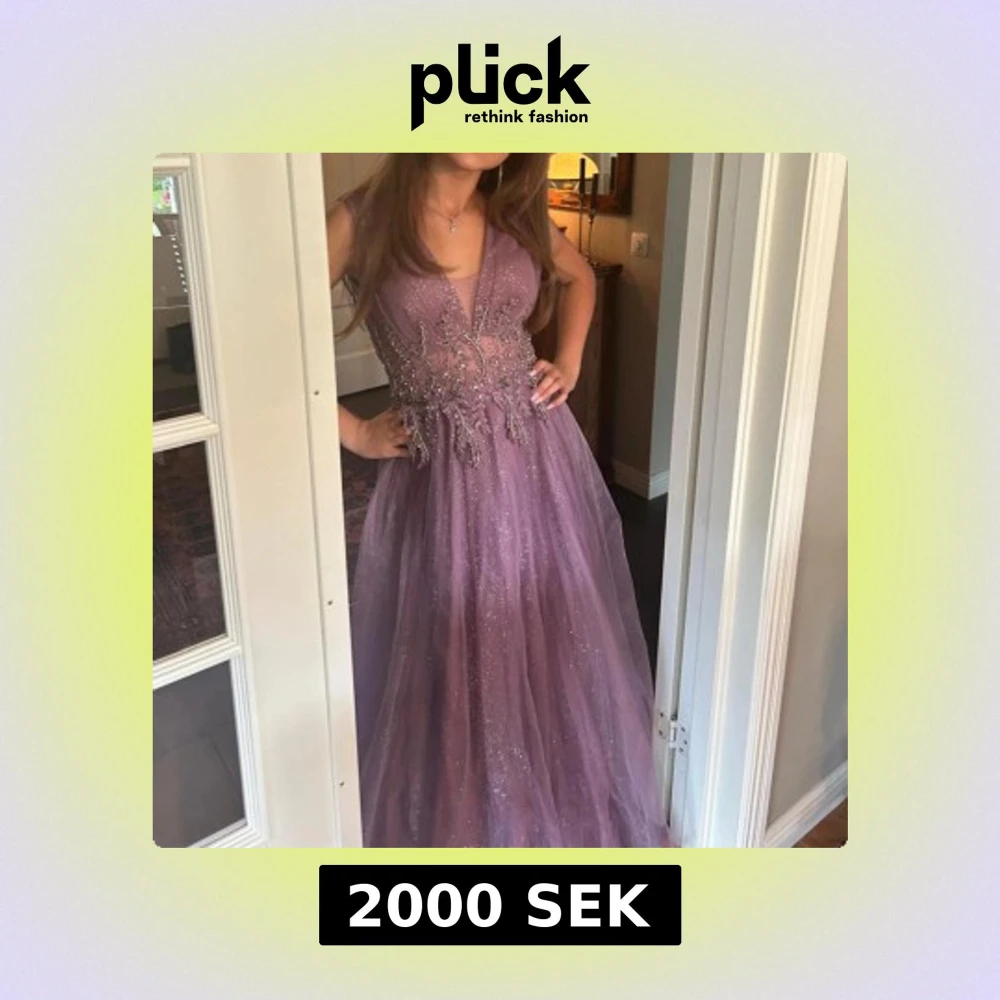 Säljer en ljuslila långklänning med djup v-ringning och glittrigt tyg. Klänningen har vackra broderade detaljer och är ärmlös. Perfekt för bal eller festliga tillfällen. Tyllkjol ger extra volym och en riktigt drömmig känsla. Stl.34/36 och passar för längd 160-170 då längd är uppsydd och kan släppas ut. Använd 1 gång och har inga skador/fläckar. Köpt på FESTIY i Kista galleria. Köpt för 2600.