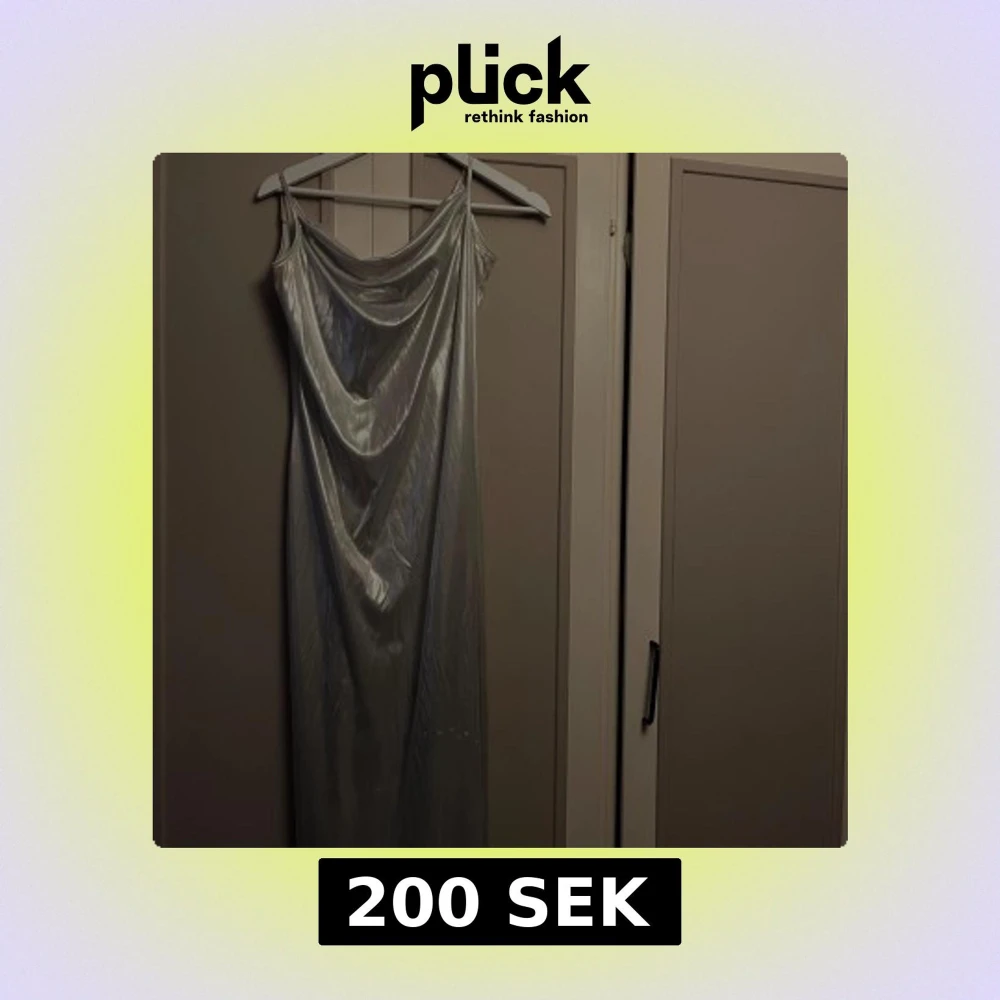 Klänningen är i L, men jag har xs och använt. Det är en glansig silverfärgad långklänning från Only med tunna axelband och snygg drapering framtill. Klänningen har en slinky passform. Materialet känns mjukt och följsamt mot kroppen.❤️❤️❤️(kom med prisförslag)