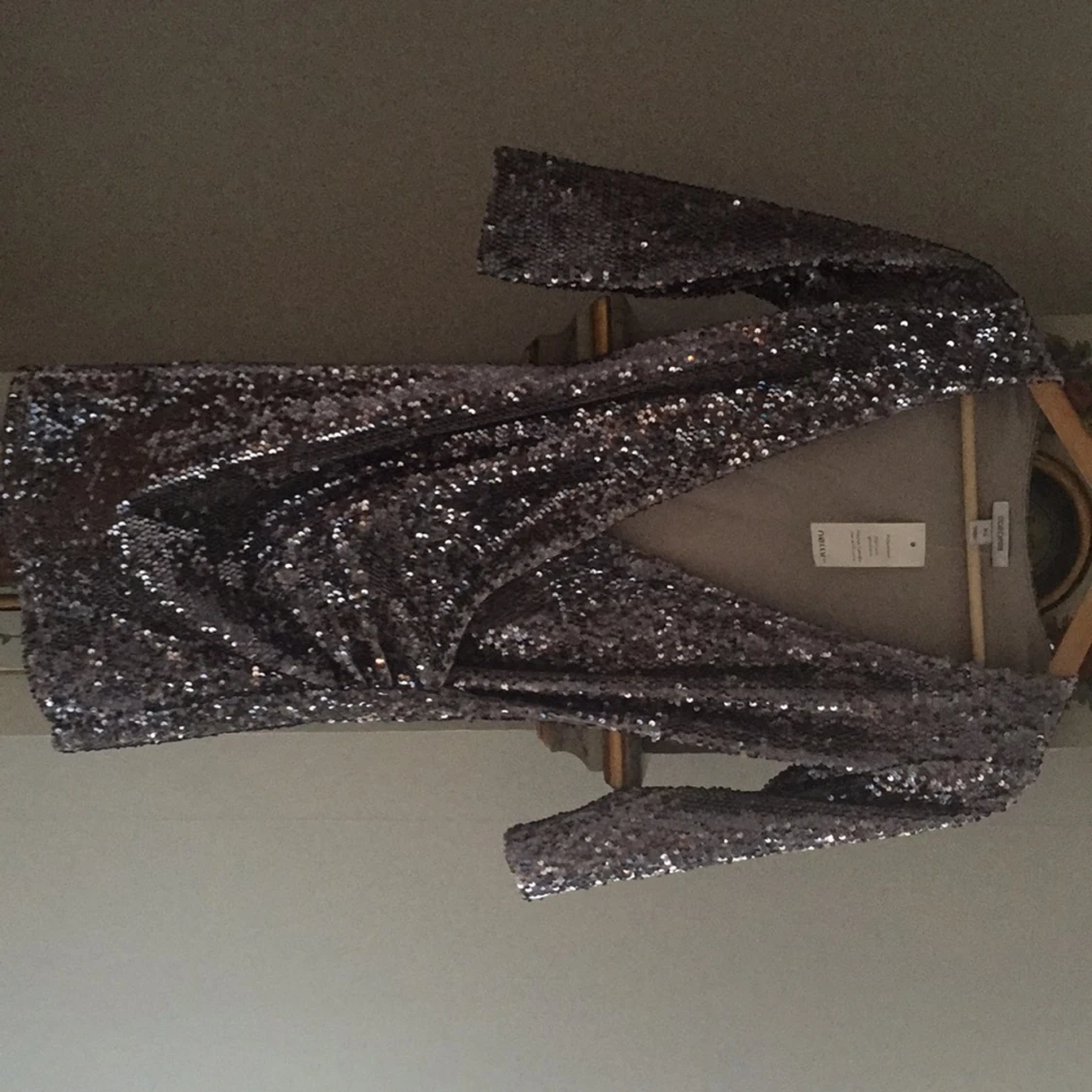 en supersnygg tight silvrig paljettklänning från nelly, aldrig använt (dock testad 1 gång) och lappen sitter kvar. passar XS/S. pris kan diskuteras!