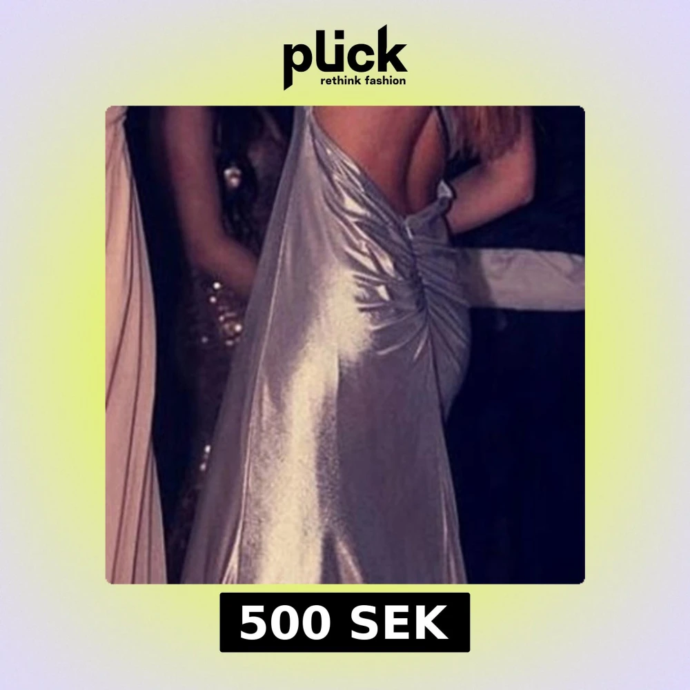 Elegant silverfärgad långklänning med en vacker öppen rygg och smala axelband. Klänningen har en glansig finish och en figurnära passform som ger en stilren look. Använd 1 gång. Säljer fler klänningar så kika gärna på min profil.