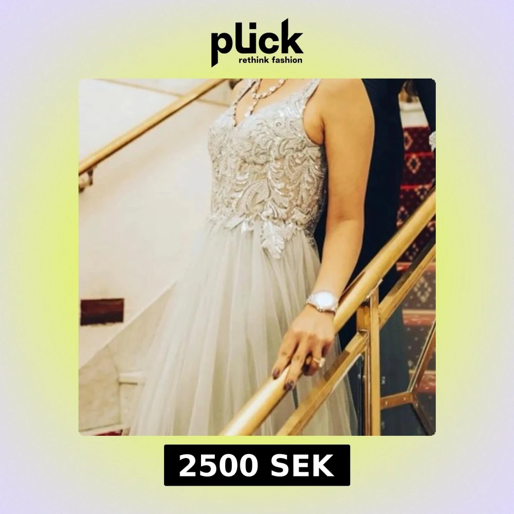 Säljer en elegant långklänning i silverton med glittrande paljetter och broderade detaljer på livet. Klänningen har breda axelband och ett skirt, flödande tyg i kjolen som ger en lyxig känsla. Dragkedja i ryggen för enkel påklädning. Perfekt för bal eller nyår.