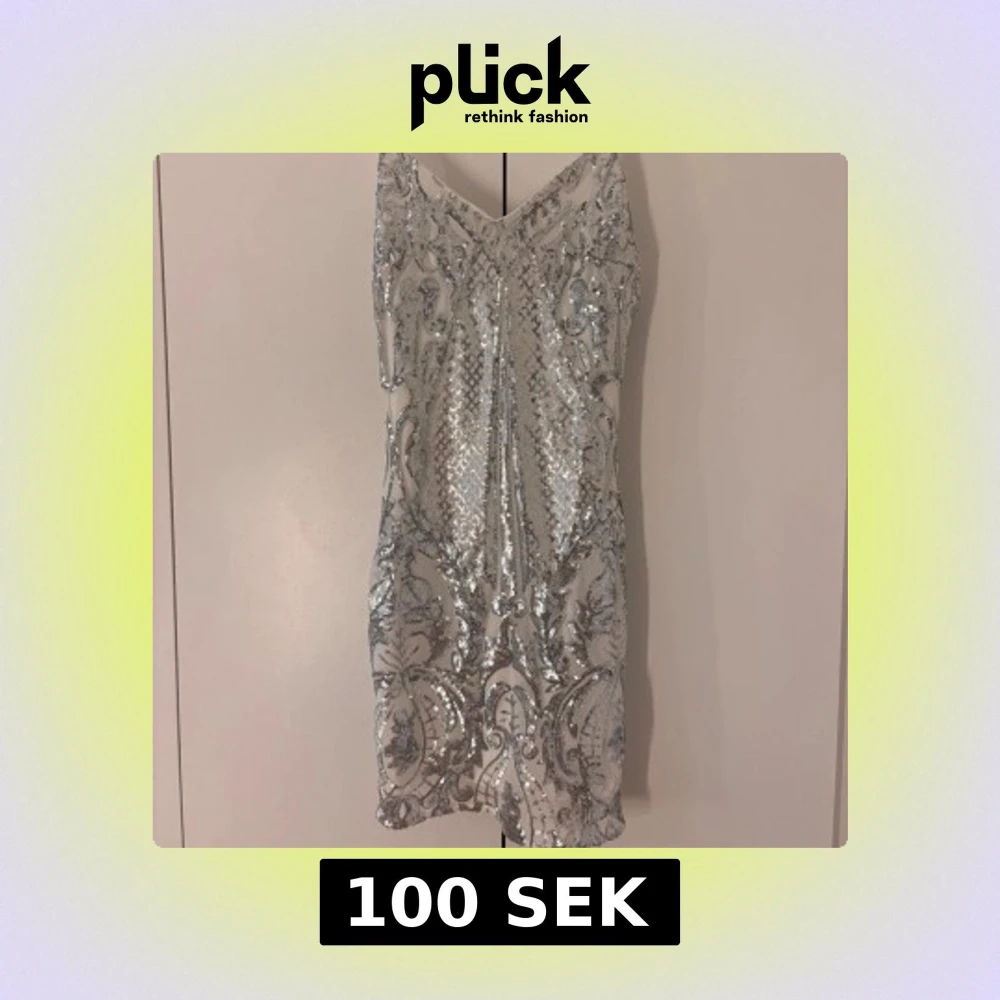 Silvrig fest klänning. Kort och sitter åt på kroppen. Säljer då den är för stor för mig