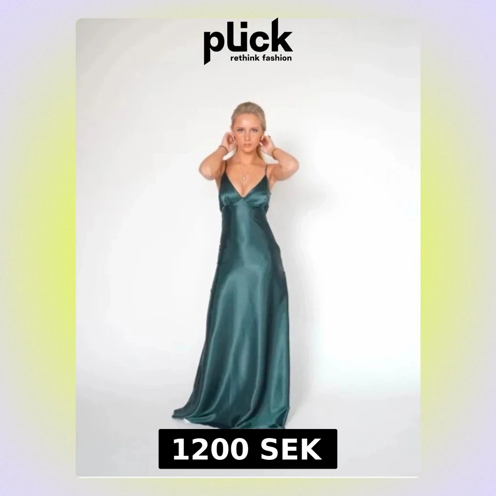 Snygg mörkgrön långklänning med smala axelband och v-ringad urringning. Klänningen är i storlek S men är beställd extra lång (jag är 179 och den lägger sig på marken även när jag har klackar). Passar perfekt till studentbal, sittning eller liknande tillställning. Modell Sophie från by Stina.