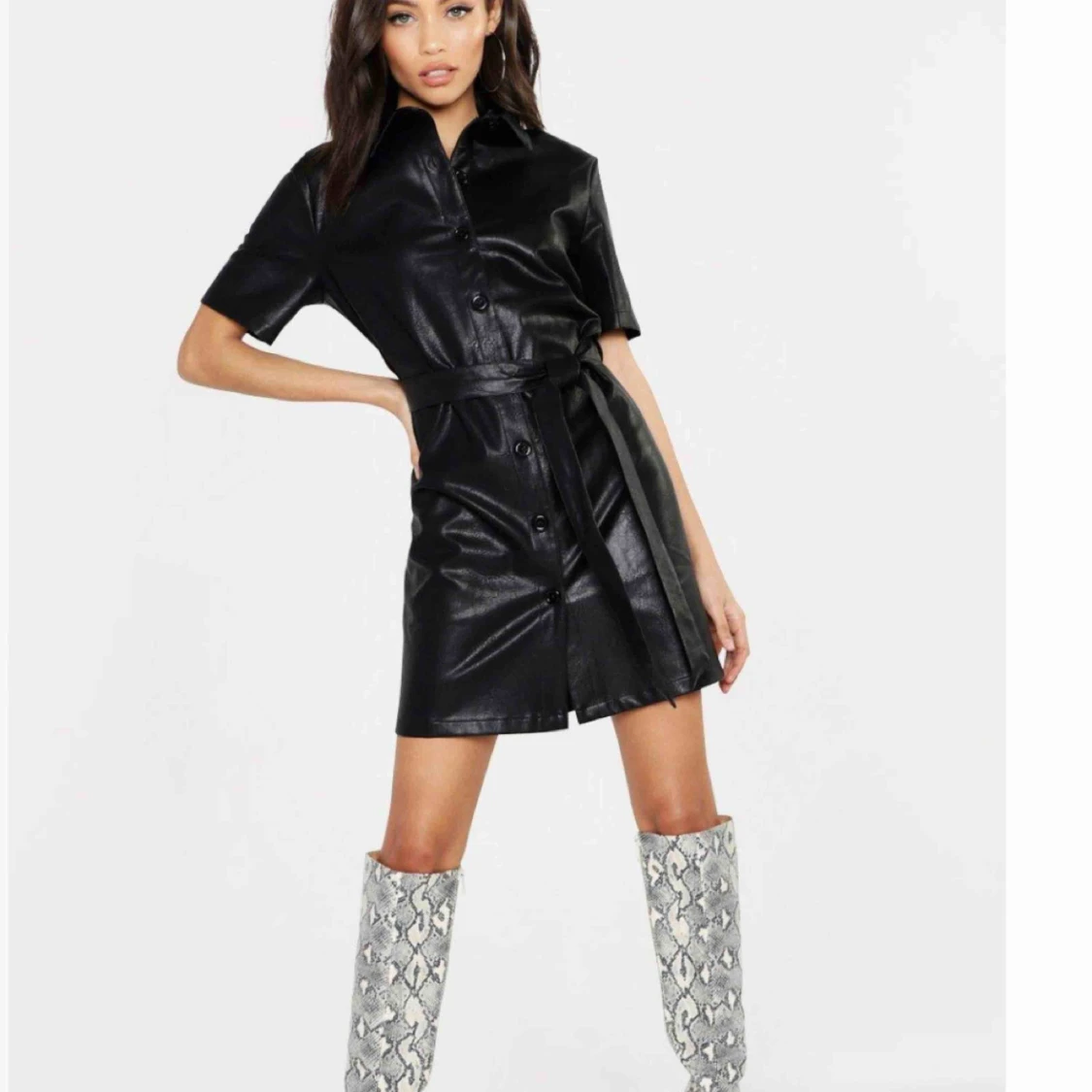 Helt oanvänd fake läder klänning, super snygg men köpte tyvärr fel storlek! Passar strl 34-36 🔥 frakt tillkommer!