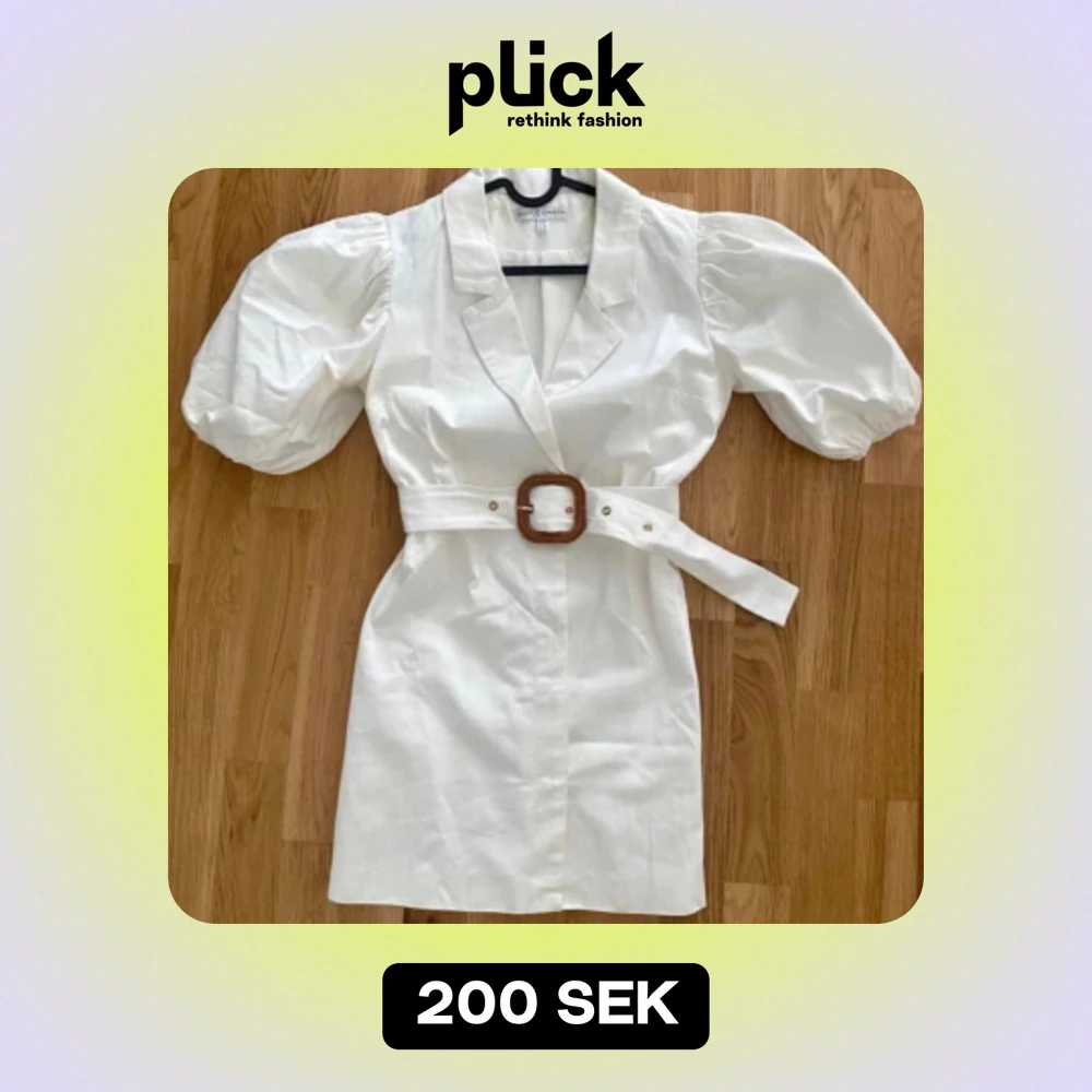 Kort klänning med puff-ärmar och skärp. Sjukt snygg men är tyvärr för liten för mig… använd 2ggr så i mycket fint skick! Hade varit en otroligt fin studentklänning. Skriv till mig så kan jag skicka mått på klänningen