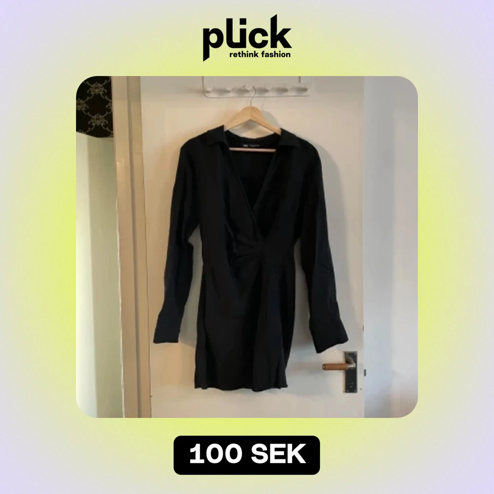 Svart skjortklänning från Zara som tyvärr blivit lite för kort för mig. Litet hål i pga jag har fäst den med säkerhetsnål vid brösten.