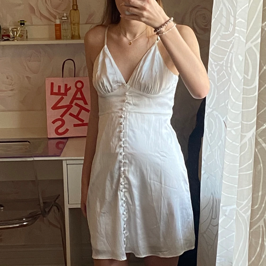 Superfin sidenklänning från Nelly x Bianca som passar jättebra till studenten🌸🌸Jag har bara använt den en gång. Den är i storlek 36 men passar även en 34