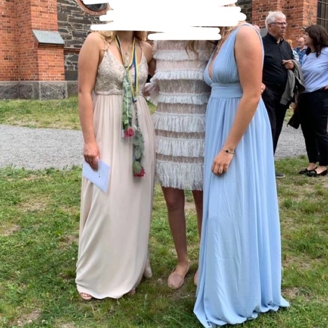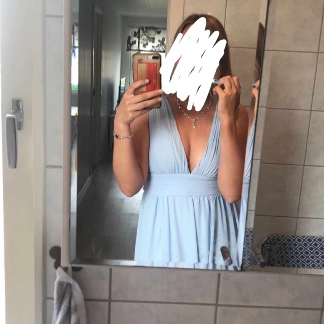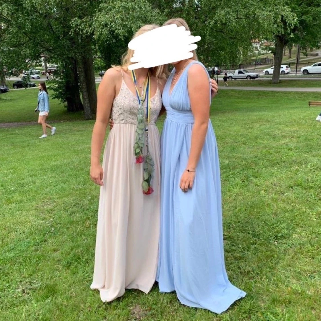 Superfin ljusblå långklänning! Jag hade den när jag slutade 9an på dagen och har inte använt den sedan dess. Mycket bra skikt.☺️ Köpte den på Bubbleroom och den finns inte kvar längre. Kan fixa fler bilder 🥰