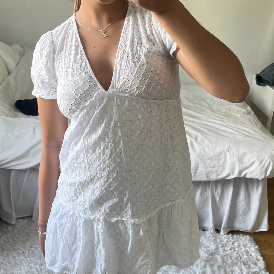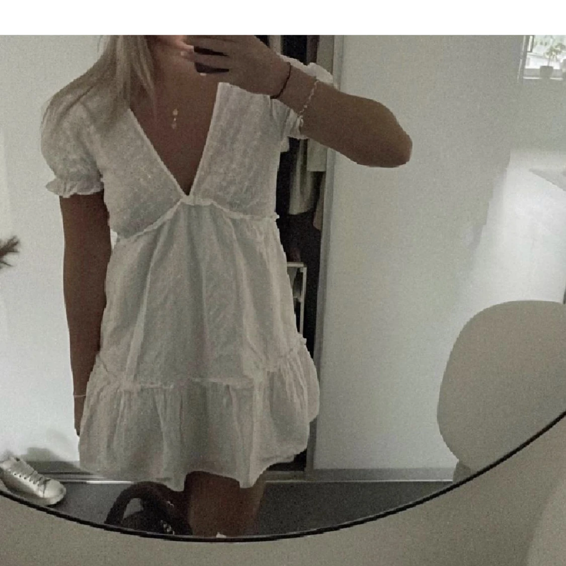 Vit klänning med volanger. Passar perfekt till student eller skolavslutning! Inga tecken på användning. (Andra bilden lånad)
