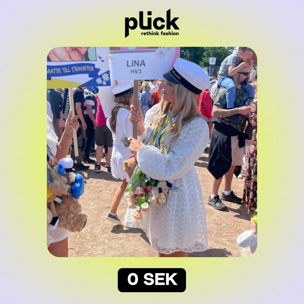 Säljer min fina studentklänning! Den har långa puffärmar med en blommig spetsdesign, älskar den. Perfekt för sommar och student, buda ! 🌸🩷