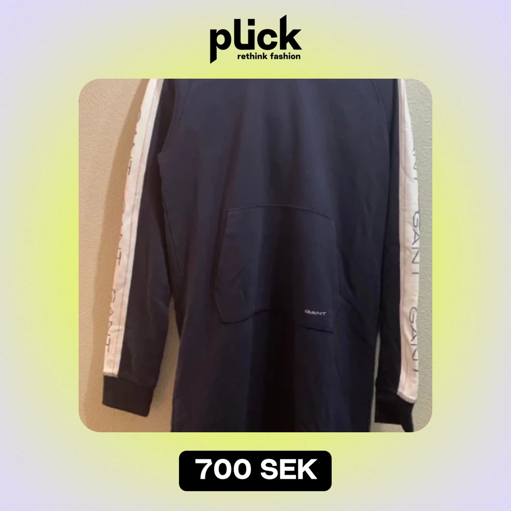 NY Gant mjukis luvklänning. Mörkblå med Gant emblem längst med sidorna . Lappar kvar aldrig använd. Mysig luva på. Fickapå magen. Från kidsbrandstore. Dottern hade fler och denna blev ej använd. St 176 passar vuxna. St från 164 , 170, 176, xs , s.