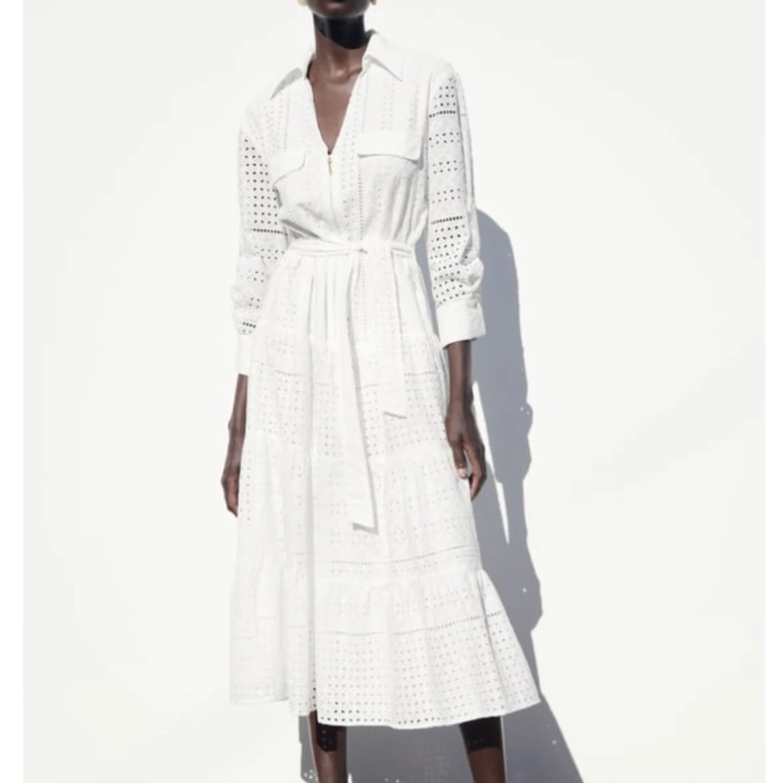 Ny och oanvänd jättefin vit klänning från Zara med hålbroderier. Storlek small. Nypris 799:-