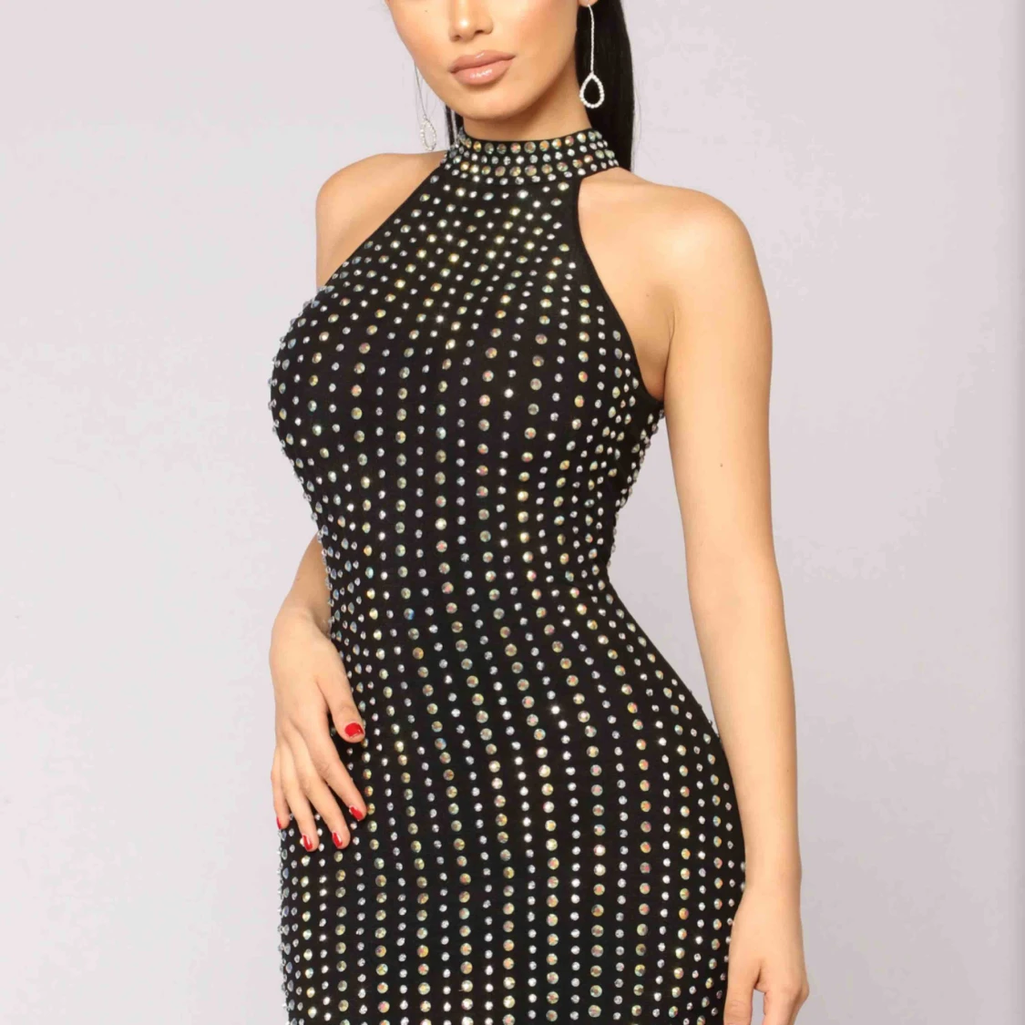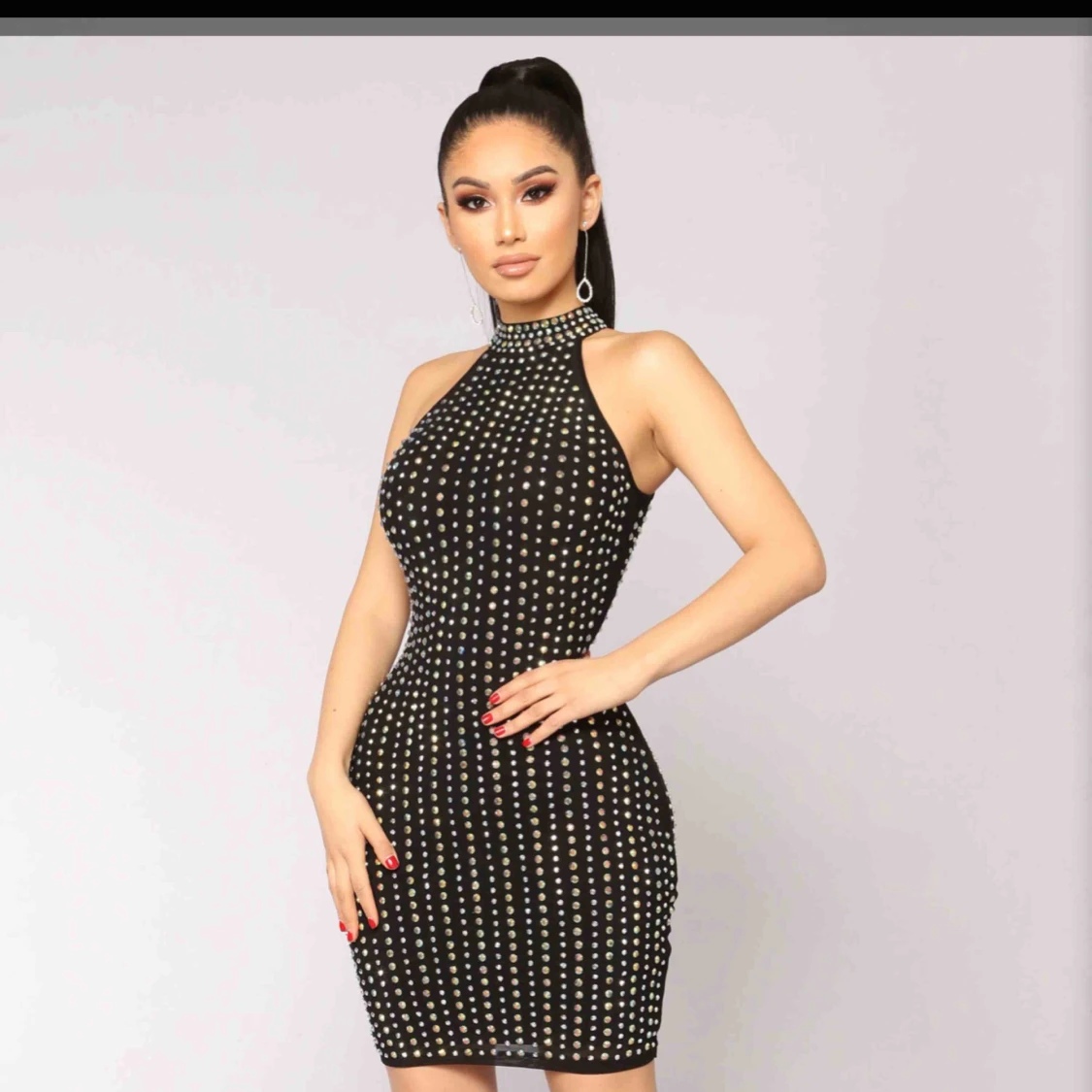 Helt ny klänning från fashionnova prislapp kvar! Med stenar som glittrar Passar en med storlek M