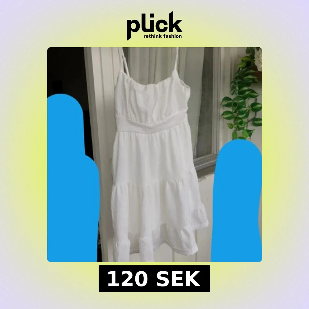 Supersöt vit kortklänning med tunna axelband som går att justera och smockad överdel. Klänningen har volangig kjol. Den är S men passar M oxå
