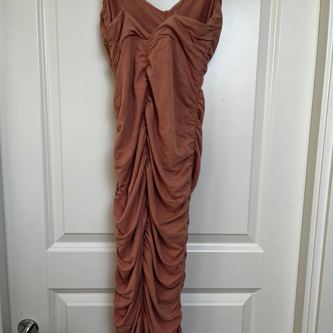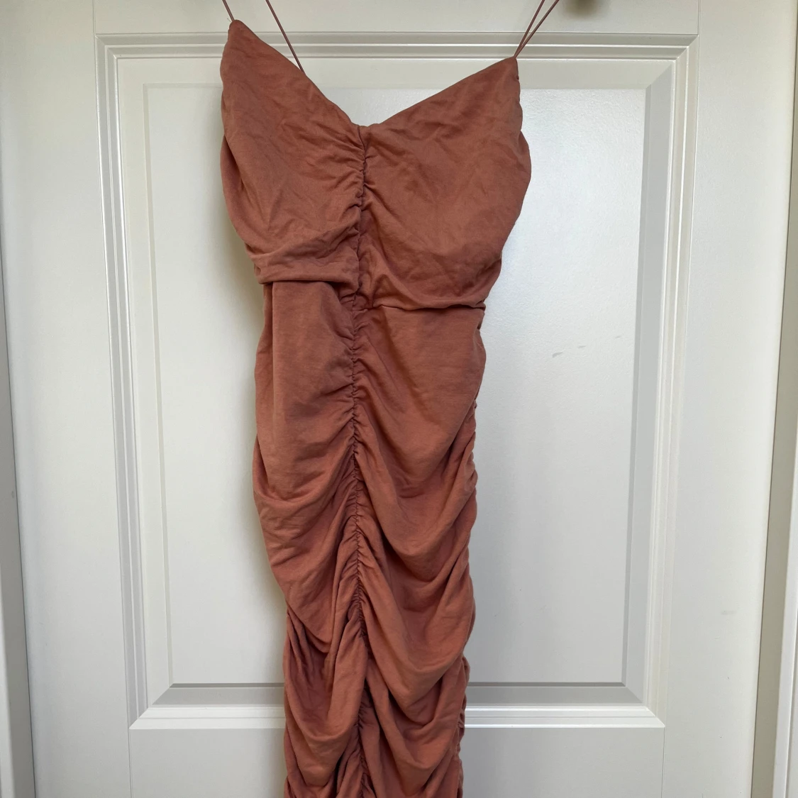 Rynkad klänning endast använd 1 gång Smuts rosa färg Stretch i materialet