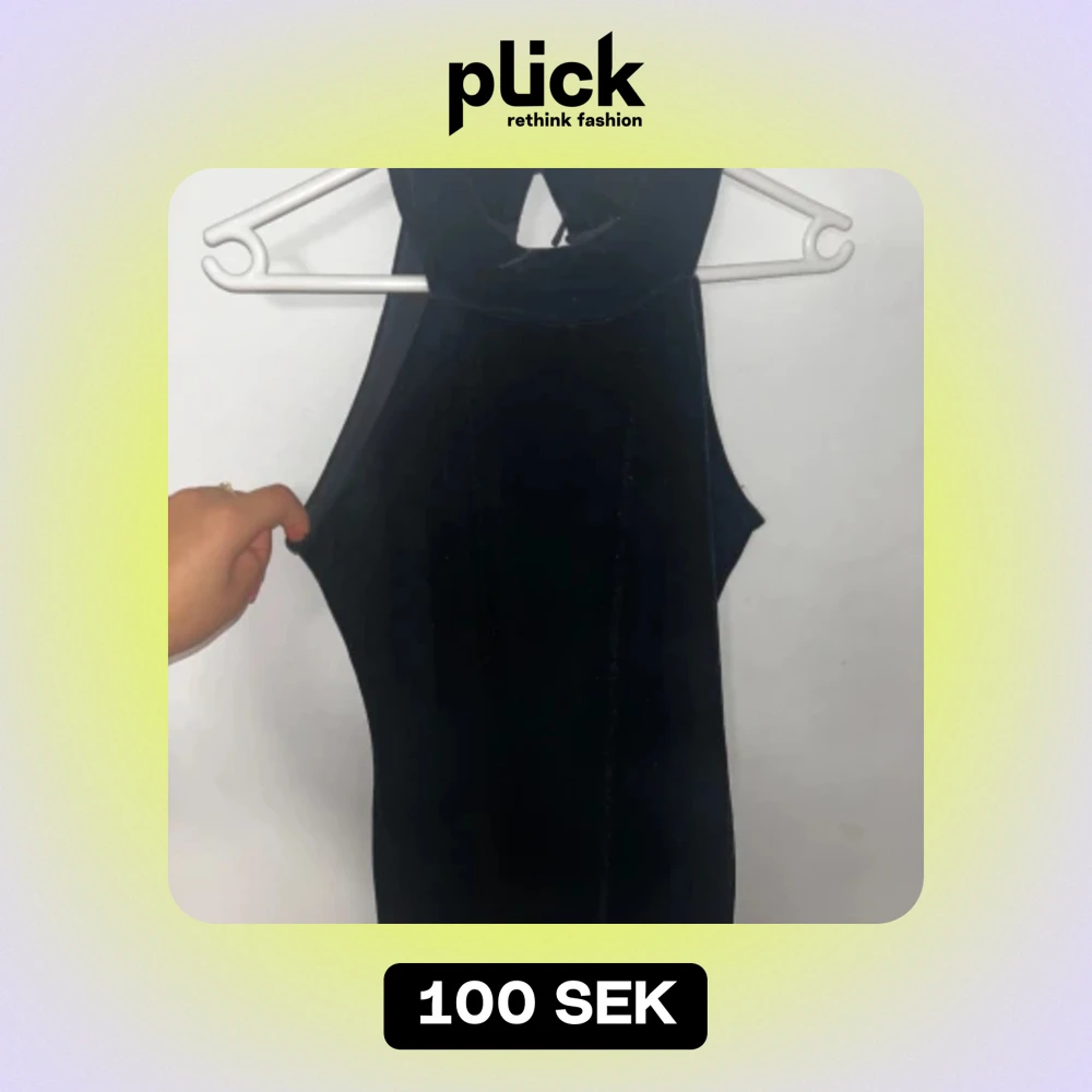 Säljer en elegant svart klänning i mjukt sammetstyg. Den har en tight passform och är ärmlös med en stilren design. Perfekt för festliga tillfällen! Aldrgi använt