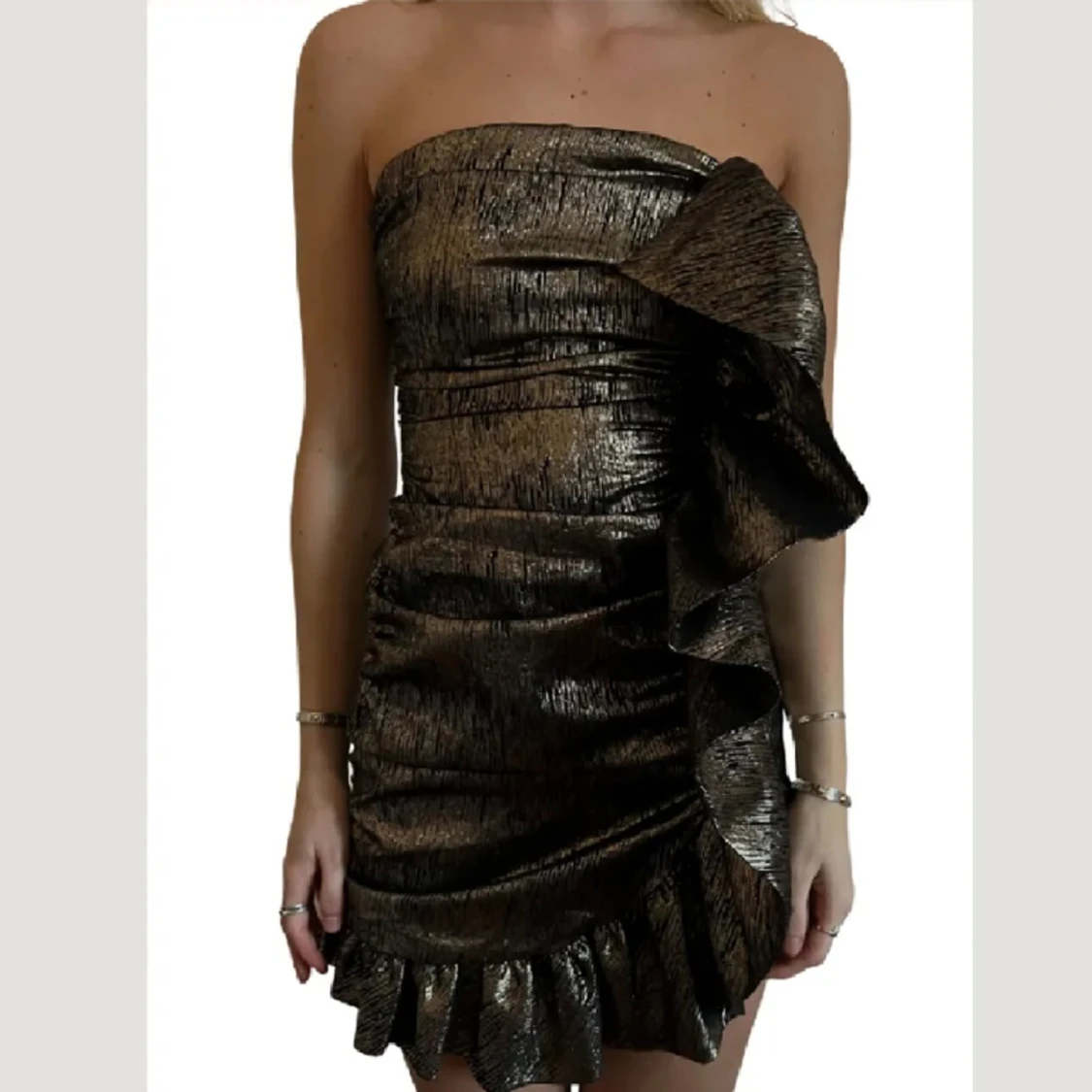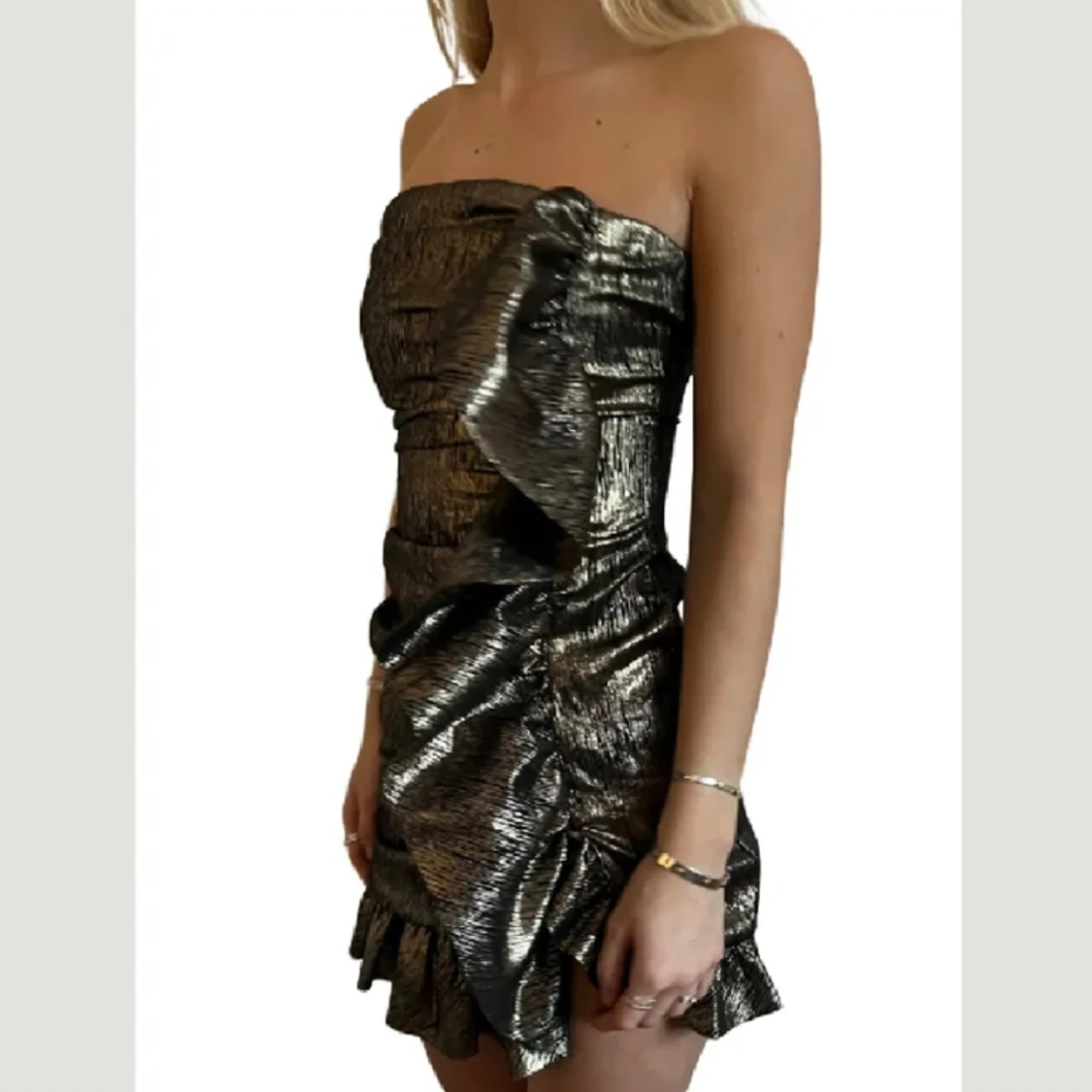 Säljer finaste, guldiga klänningen från Zara i storlek S (passar även xs, liten i storleken) ⭐️😇 kommer ej till användning 💞
