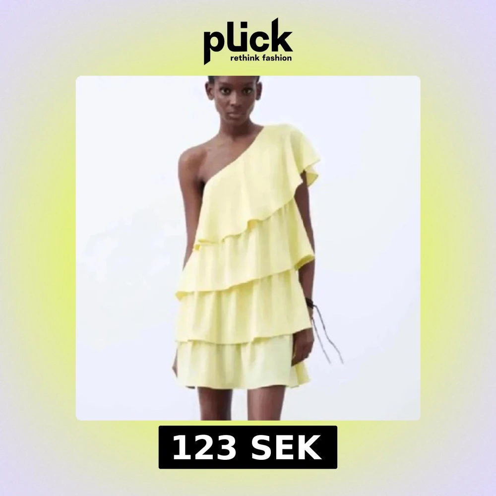 Söker denna gula volangklänning från Zara i storlek S. Kan betala upp till 900kr för den!💗