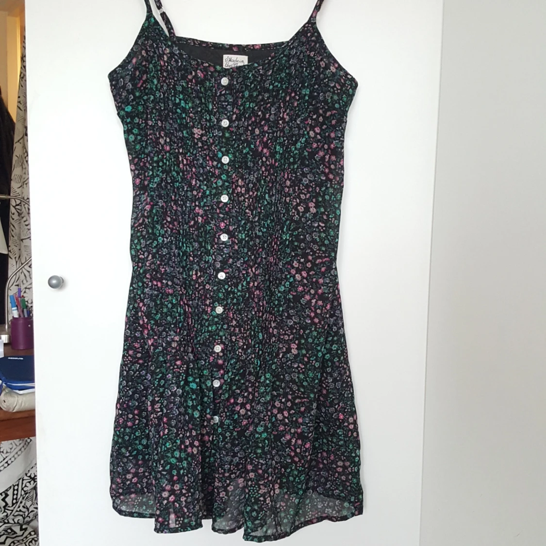 En supersöt blommig klänning som använts för få gånger. Känns både höstig och somrig! Står x-small men passar både small och medium