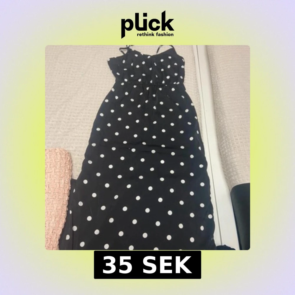 Snygg svart klänning med vita prickar från Divided H&M. Klänningen har smala axelband och en v-ringad överdel. Perfekt för en somrig look!