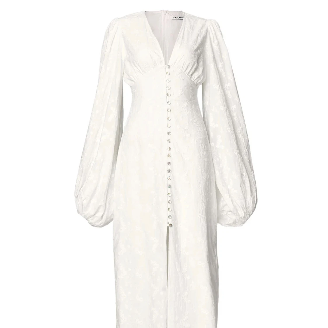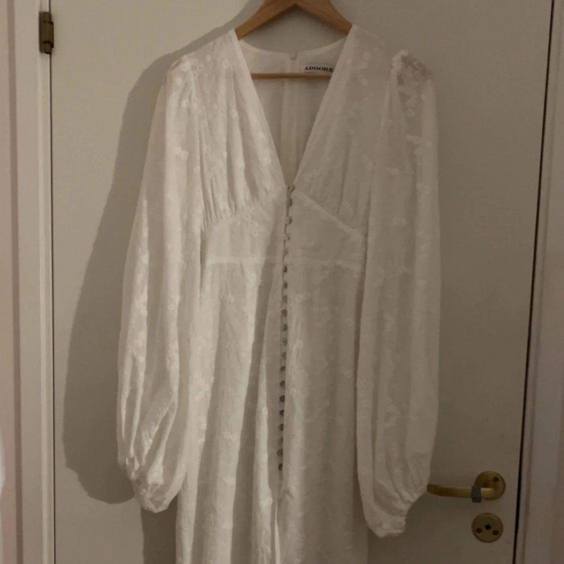 En så fin klänning från Adoore i modellen ”Positano Dress” i färgen White. Så fin och bekväm klänning med fint mönster i storlek 34. Köpt för ca 1700kr. Endast använd ett fåtal gånger. Ps. två knappar har lossnat nertill💖