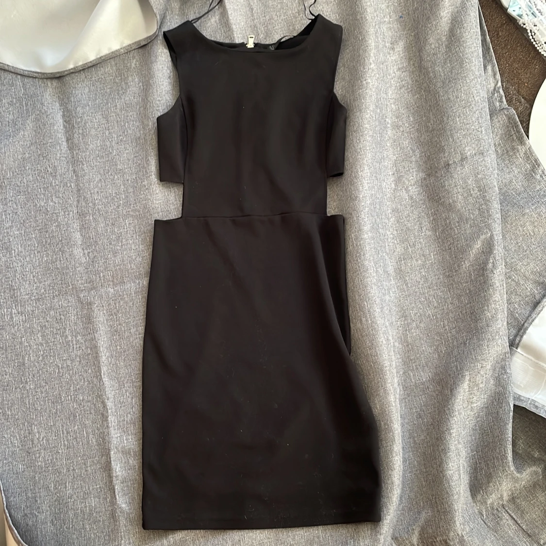 En svart klänning med dragkedja på baksidan och lite öppet på sidorna från bubbleroom:)