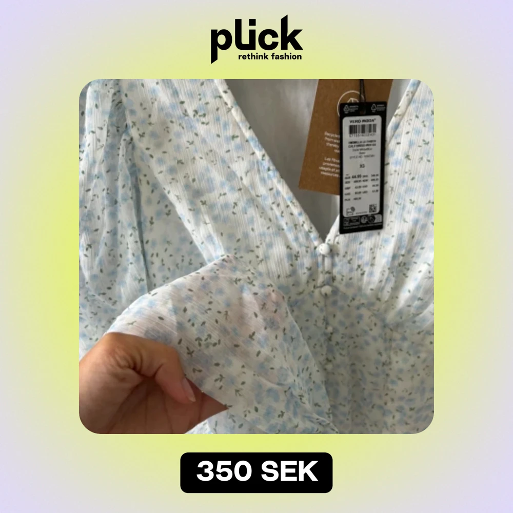 Helt ny klänning längre i modell strl xs från Veromoda printet är med ljusblåa blommor med vit botten armarna är transparent medans klänningen har som en insydd under klänning