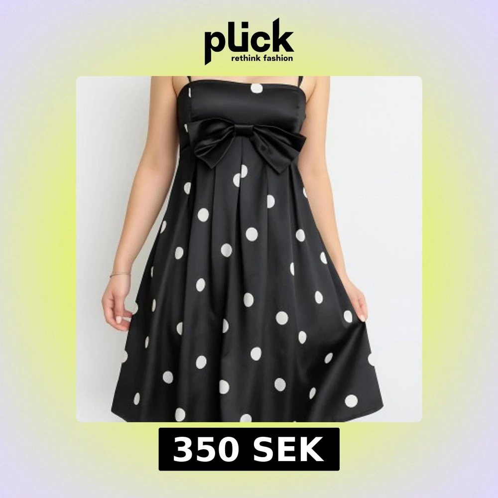 Jättesöt svart silkesklänning med rosett och vita prickar 🎀har dragkedja så det ska vara lättare att ta på sig den!