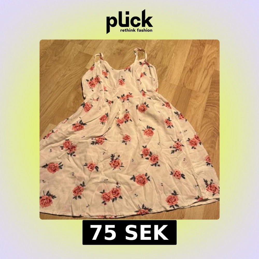 Söt blommig klänning från H&M med rosa rosor på en ljus bakgrund. Klänningen har smala axelband och en avslappnad passform, perfekt för varma dagar. Den är tillverkad i ett lätt och bekvämt material.