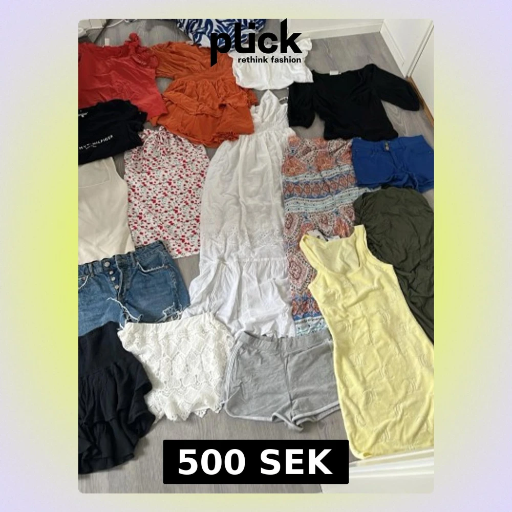 Köp en helt ny garderob för priset av 1 ny tröja. Alla priser höjs på kläder och här har du en sommar garderob med allt du kan tänkas behöva. Toppar, kjolar, klänningar osv. Fåtal av kläderna är från shein anars är de h&m, gina samt andra märken såsom juicy couture och Tommy hilfiger. Behöver du eller nån du känner en sommar garderob är de bara att höra av sig. Storlekarna är för dig som är runt storleken S. På vissa kläder står ingen strl så är osäker. Pris kan diskuteras!❤️