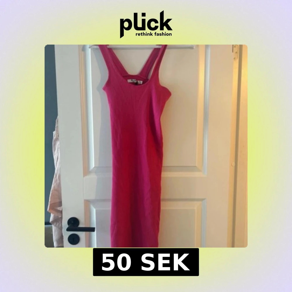 Snygg rosa ribbad klänning med breda axelband. Perfekt för en somrig look. Klänningen har en enkel och stilren design som passar till många tillfällen.