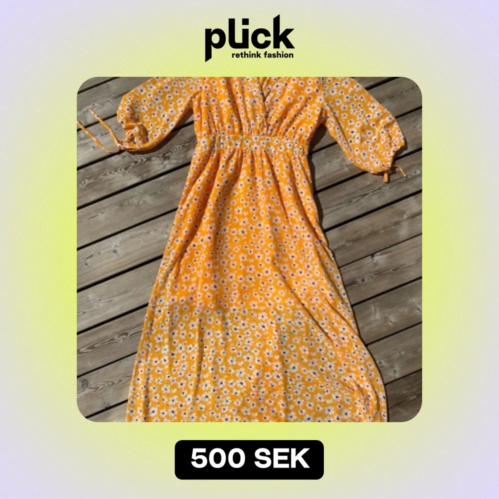 Selected Femme gul klänning, storlek 36 En vacker gul klänning med vita blommor. Klänningen har en v-ringning och är löst sittande. Den har en elastisk midja och är perfekt för varma dagar. En till drömmig klänning, se mina andra annonser.