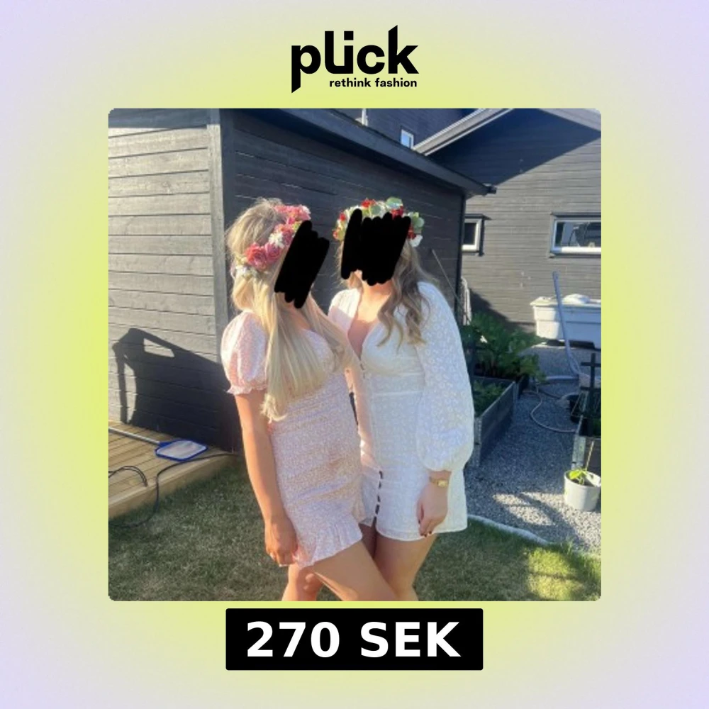 Super fin vit klänning med små blombroderier. Använd 2 gånger endast så är i helt ny skick. Köpt på bubbelroom 2024 för 799kr! Jag är cirka 170 cm lång och bär vanligtvis storlek S/M.