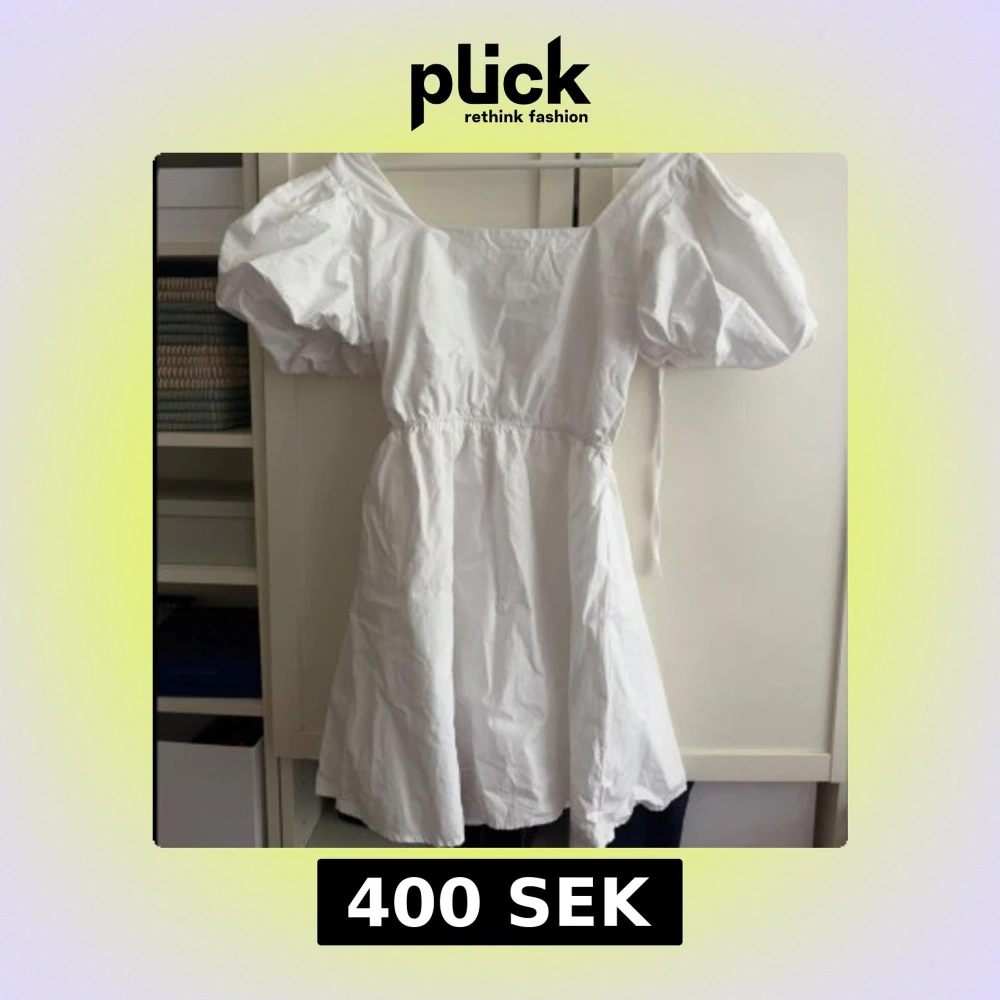 Supersöt vit klänning med puffiga kortärmar och knytband i ryggen. Tyvärr lite skrynklig nu😅😅