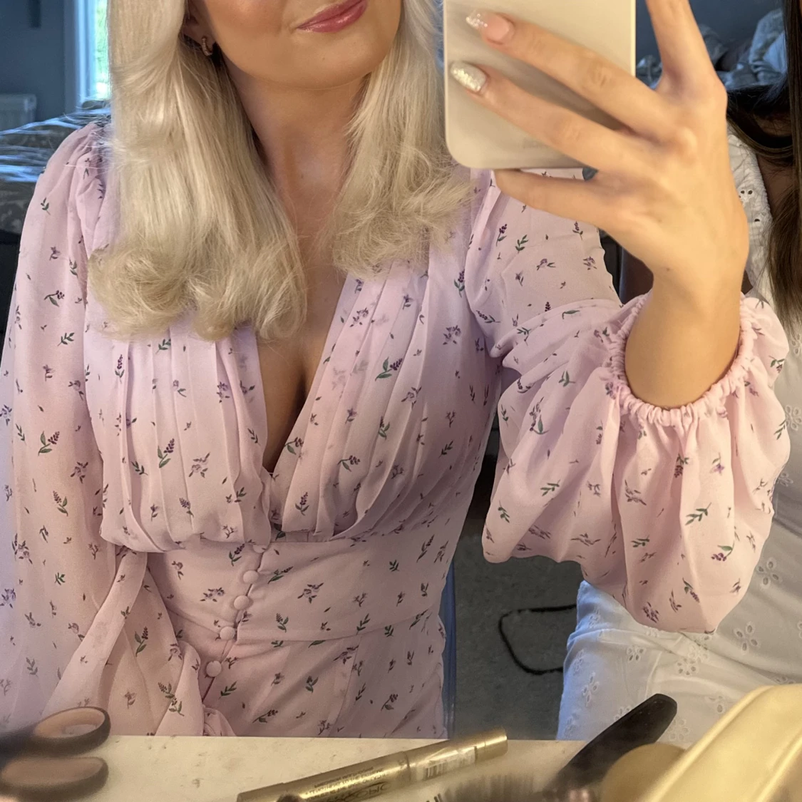 Säljer min superfina lila klänning med blommor på! Endast använd en gång. Slutsåld hos nakd, stl 36 💜