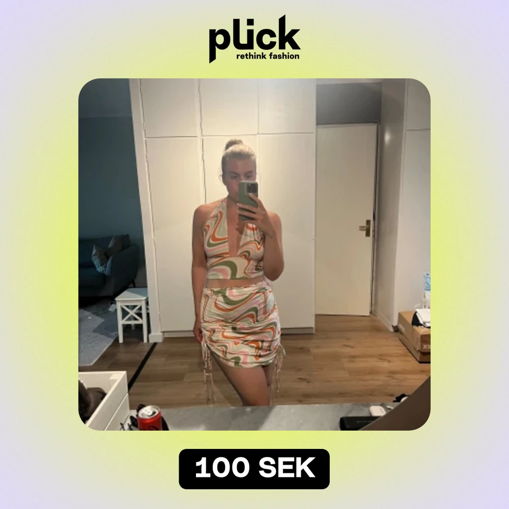 Superfint sommar set med topp och kjol som går att justera med knyt i båda sidor för att ändra till valfri längd. Sparsamt använda! S i topp och M i kjol.