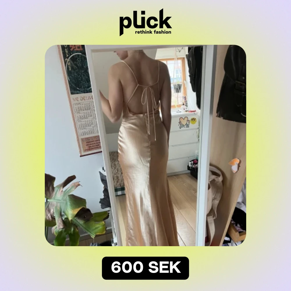 Så fin balklänning i champagne färg! Köpt här på plick men tyckte inte det var rätt för mig🩷
