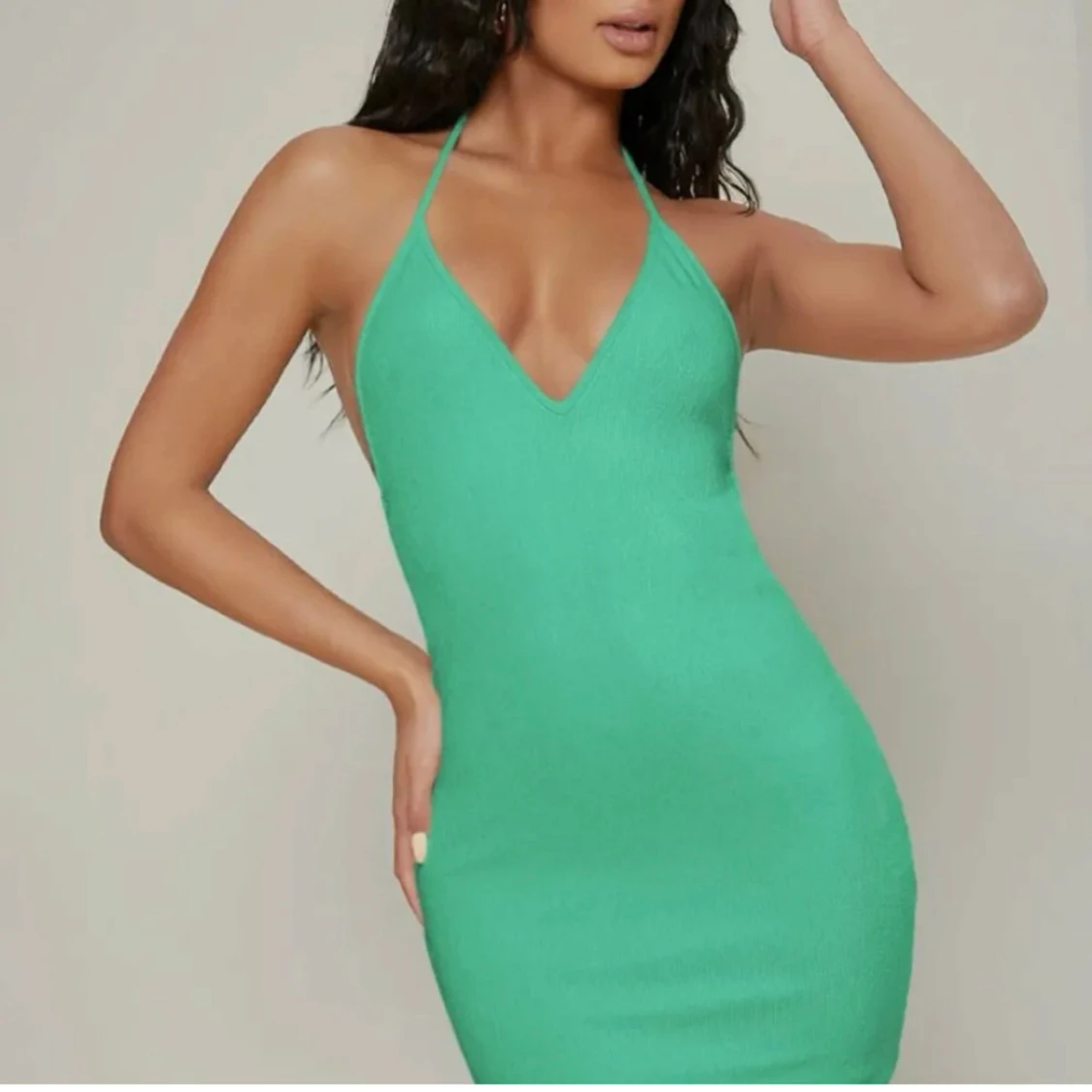 skitsnygg klänning med öppen rygg & knytning baktill 💚 säljer då den tyvärr var för liten för mig