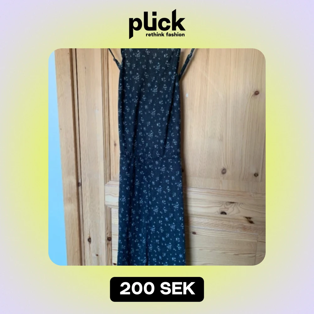 Småblommig klänning i svalt material från italienskt märke. Svår att mäta och fota då den är öppen i ryggen samt har korsade band. Banden är även justerbara. Märkt storlek M men skulle säga att den passar S, den har en del stretch. Aldrig använd.