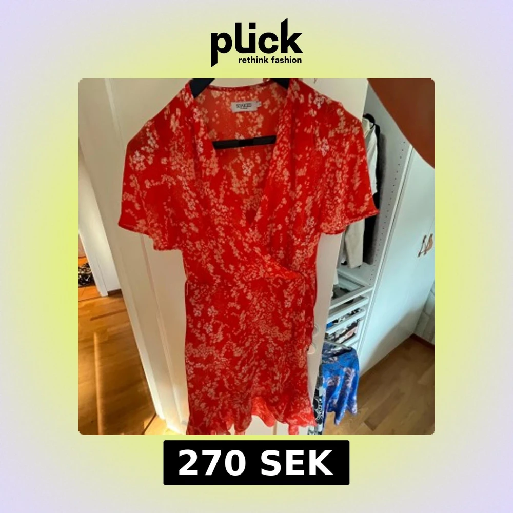 Superfin röd kortklänning från Soaked in Luxury med vitt blommönster. Omlottmodell med knyt i midjan, v-ringning och korta ärmar. Perfekt för sommarens alla tillfällen. Lätt och luftig känsla!