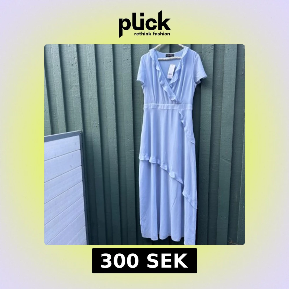 Säljer en super vacker ljusblå klänning med volangdetaljer. Passar perfekt till bal eller andra finare tillställningar💙 Helt ny med lapparna kvar💙