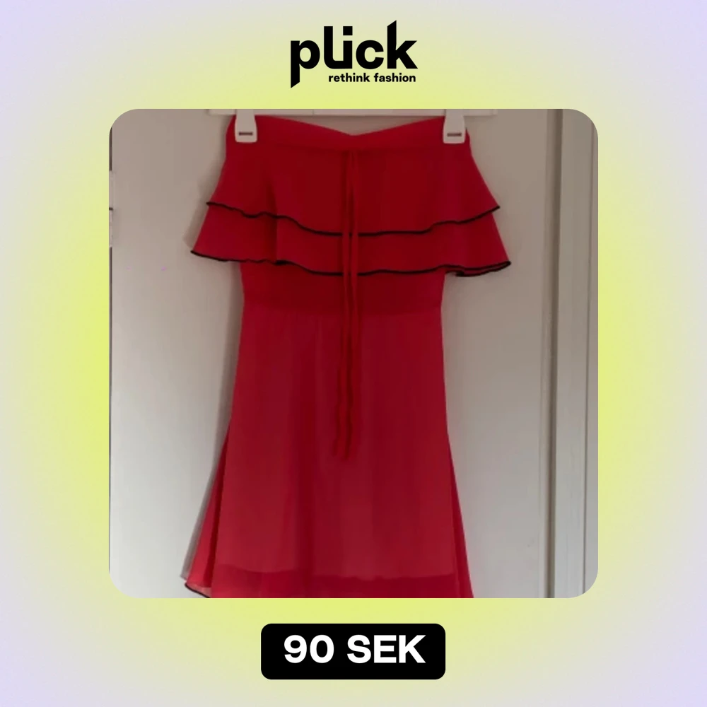 Så fin volangklänning, en kort klänning med lite svarat detaljer. Seg lite ut som att klännign är väldigt röd men är mer åt rosa och orange hållet.